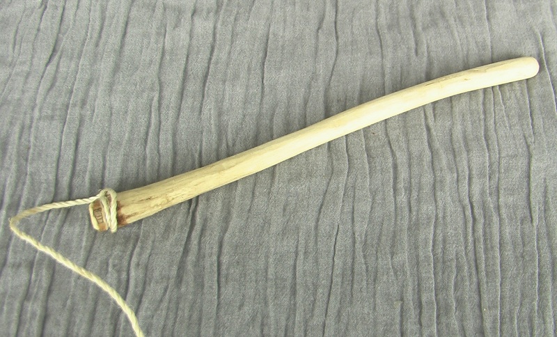 The gandira described here (see gallery #1) usually is played with other similar drums in multiple sizes. Because it was commissioned as an example of a gandira rather than as part of a multi-drum ensemble, it is somewhat smaller in size than the smallest gandira would be in an ensemble. The frame of the drum pictured here is made from the chigwendere tree (also known in English as “red bauhinia” or “pride-of-the-Cape”). A goatskin head covers the frame and is attached about wooden pegs that are pounded into the frame (detail #1). The basic tuning of a drumhead is set at the time of manufacture but can be adjusted with heat in order to make the pitch of each drum distinct and sharp enough to carry. Two crossbars behind the drum head (detail #2) add structural support and allow the person to hold the drum with one hand while striking it with a beater (detail #3) held in the other.